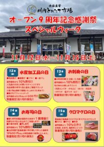 毎月第4土曜日はイベント開催!!「川内とれたて市場 9周年記念感謝祭スペシャルウィーク」イベント開催!!